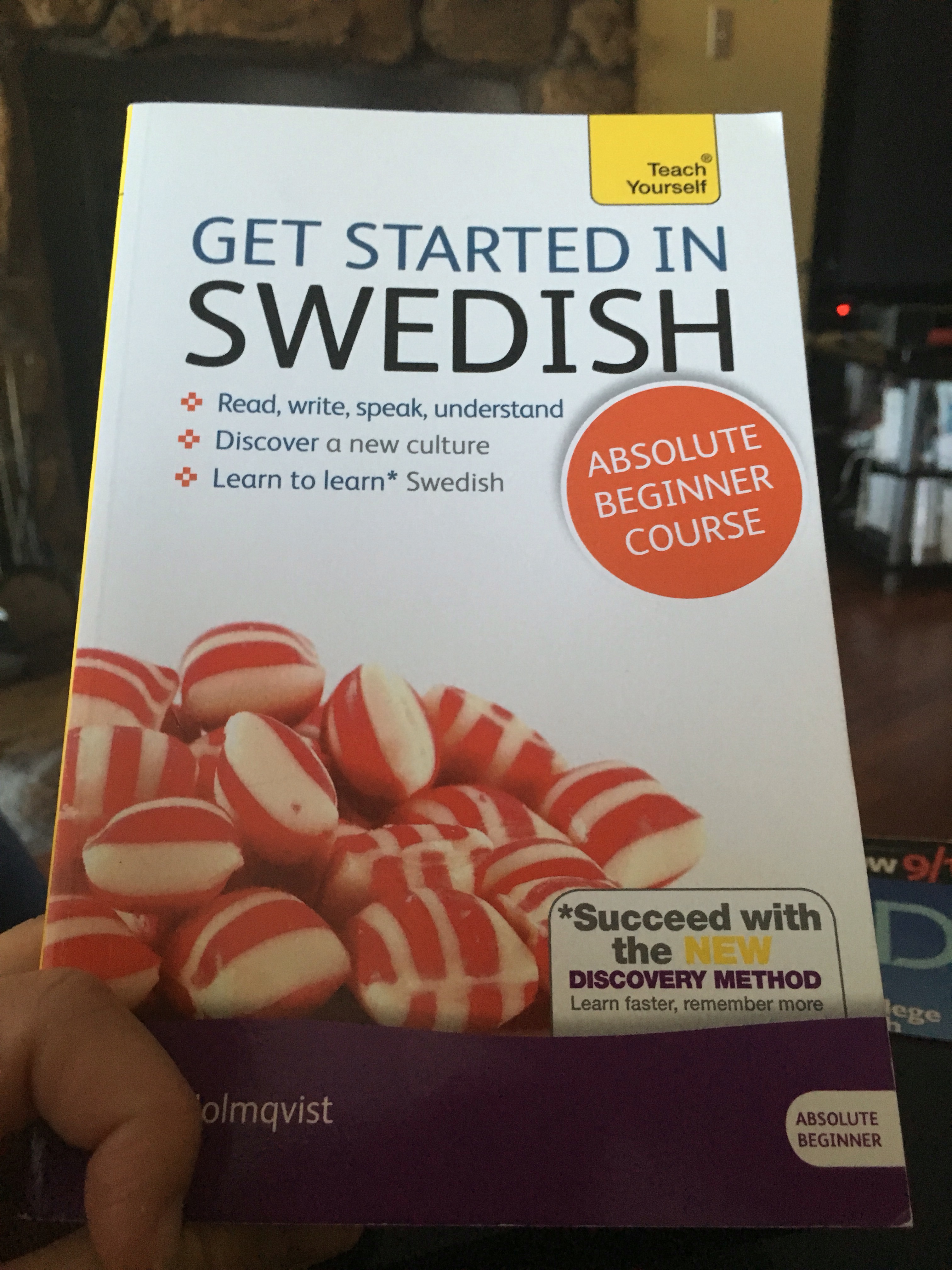 I started learning Swedish a few months ago with Duolingo, but I decided I needed a more traditional method to learn the language. Finally, I got this book really cheap on Amazon. It is the same new format used with the Mandarin Chinese book I talked about earlier. While I hate that the CDs in these books only work in MP3 players (which means my cheap car won’t play them and for some reason they’re more of a pain to download onto my phone than regular CDs), the new format is a whole lot of fun. I like the whole encouraging me to figure stuff out on my own idea that the new book layout uses.