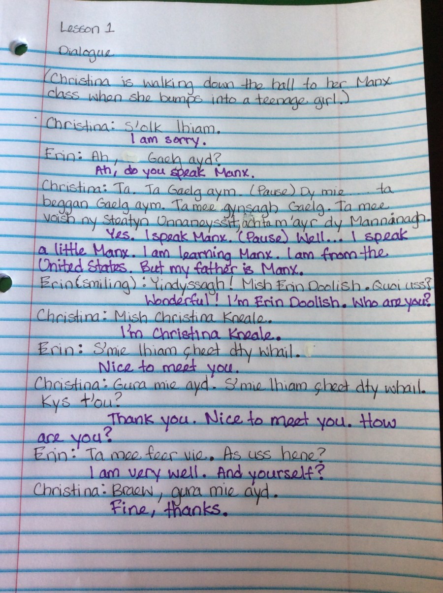Since there are limited resources for learning Manx (also referred to as Manx Gaelic), I decided to create a few lessons for fun. To test potential interest, I decided to post the first lesson here on this blog.