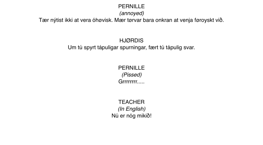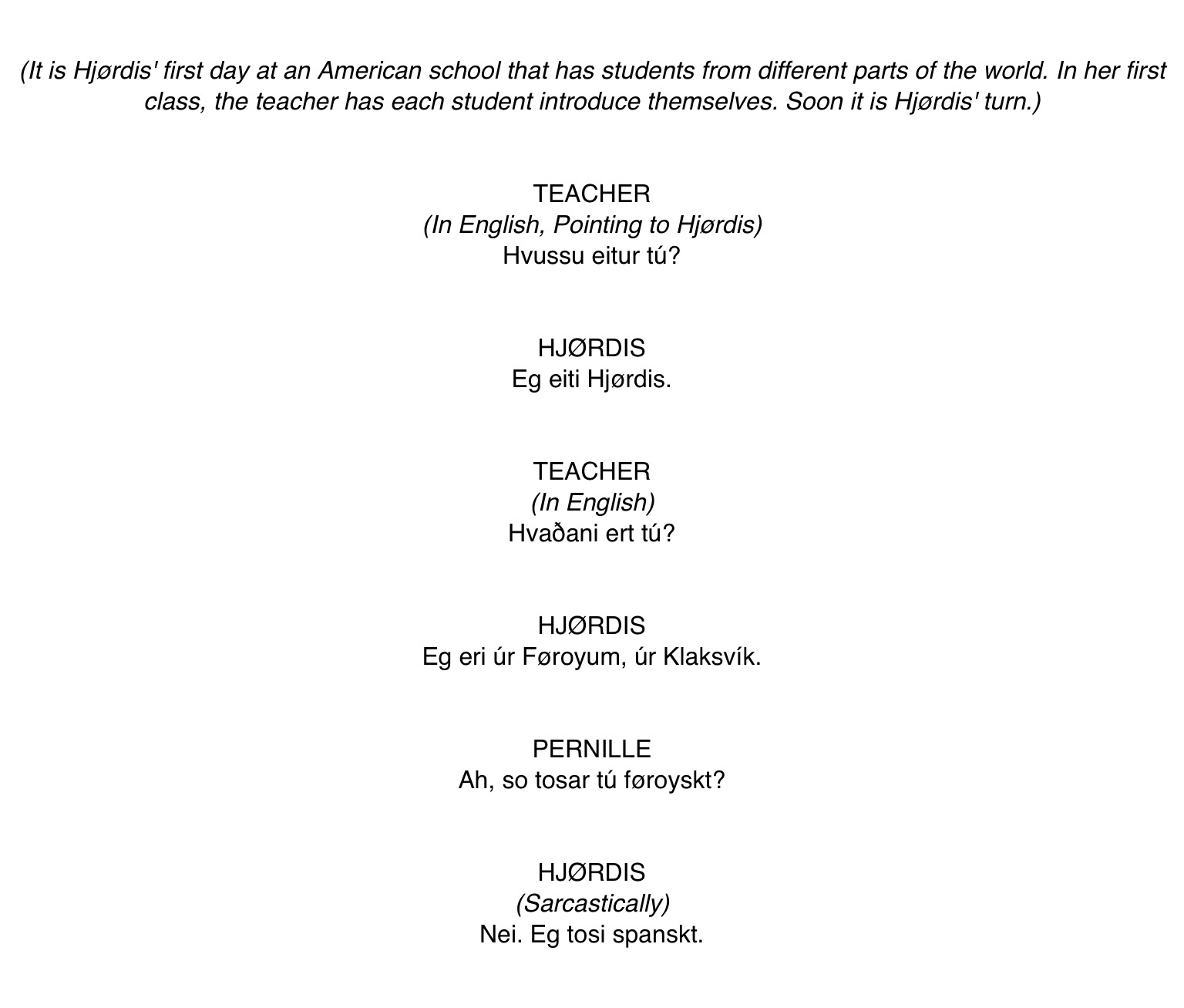 Mær tørvar bara onkran at venja føroyskt við. I just need someone to practice Faroese with.