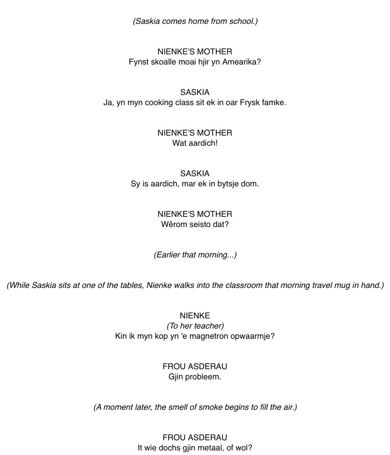 Ja, yn myn cooking class sit ek in oar Frysk famke. Yes, in my cooking class there is another Frisian girl.