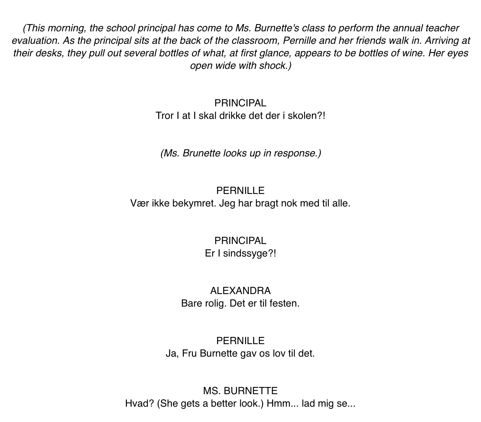 Tror I at I skal drikke det der i skolen?! Do you (pl.) think that you’re going to drink that at school?!