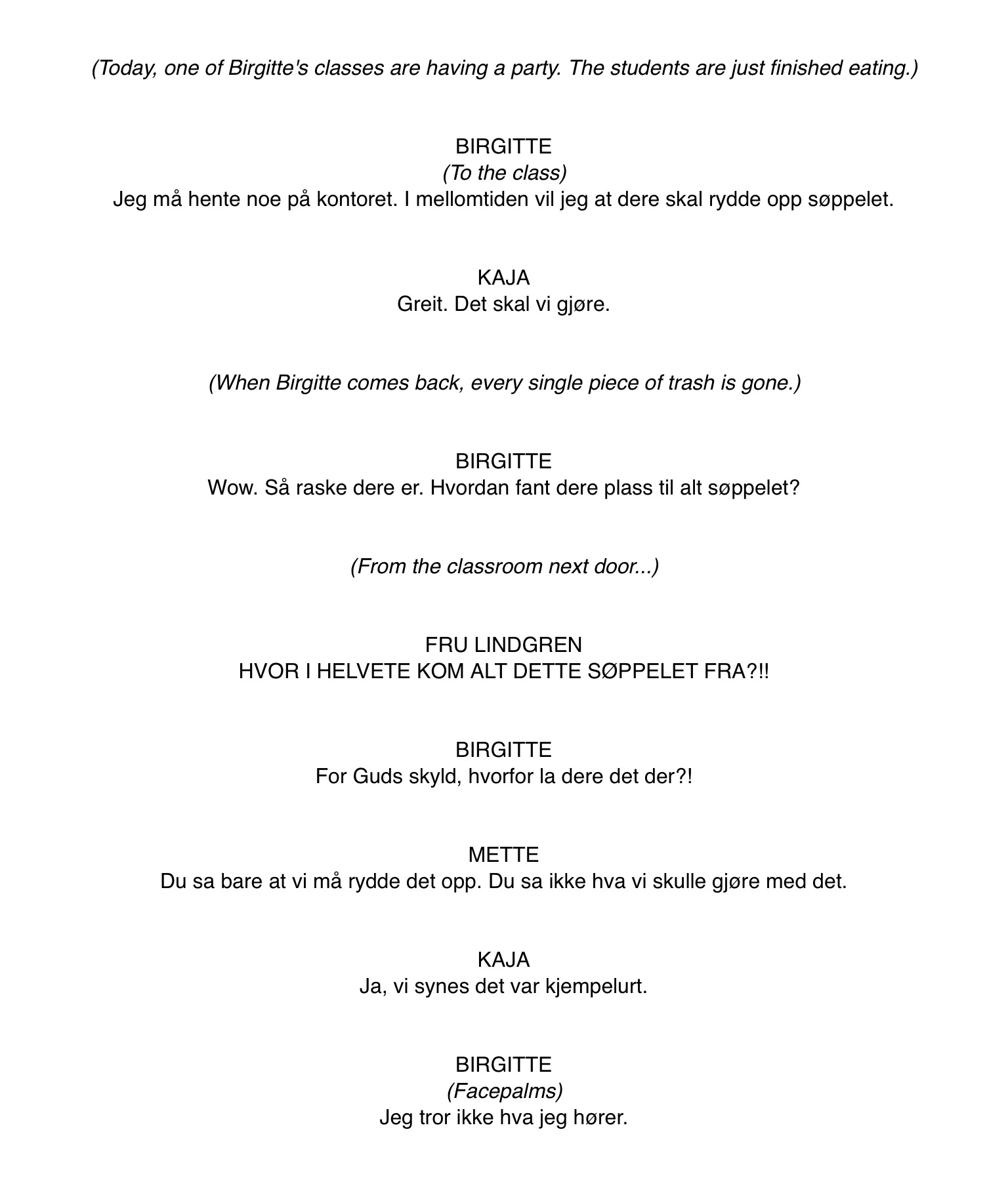 Du så bare at vi må rydde det op. Du så ikke hva vi skulle gjøre med det. You just said that we had to clean it up. You didn’t say what we should do with it.